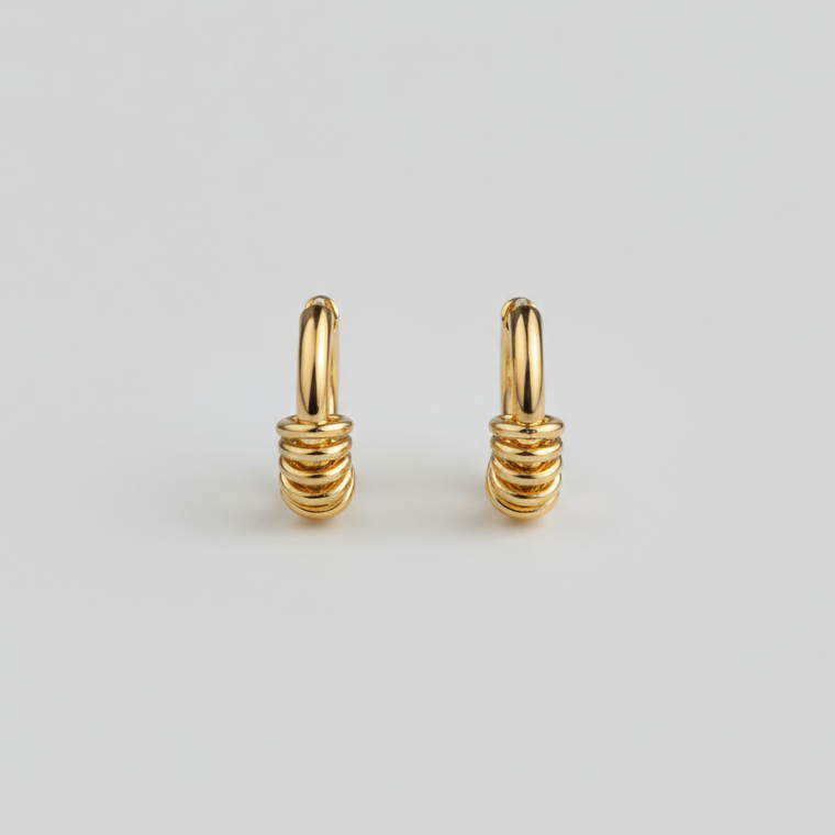 Clásicas con un giro moderno. Argollas doradas con pequeñas anillas decorativas que aportan movimiento y brillo. Ligeras, versátiles y perfectas para el día a día.