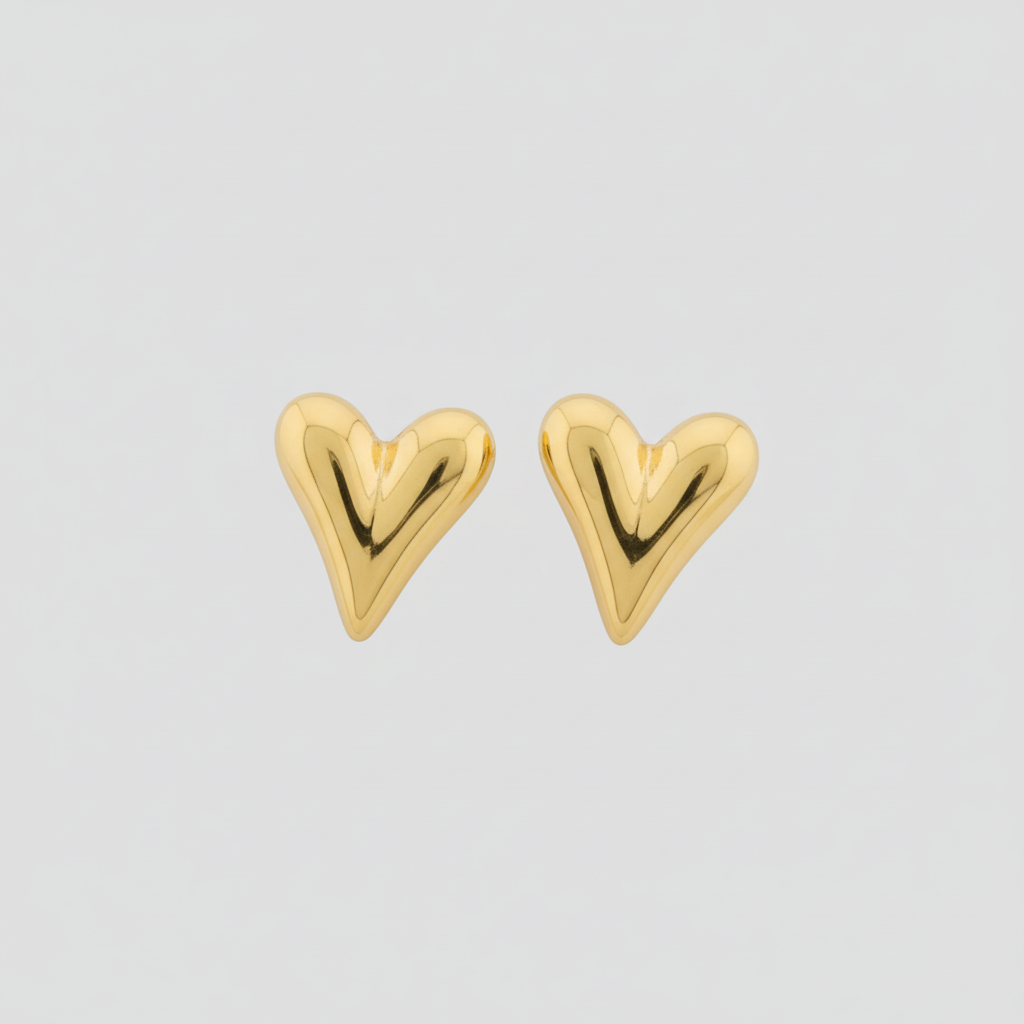 Pendientes en forma de corazón de acero inoxidable, hipoalergénicos, resistentes y ligeros. Ideales para piel sensible. Acabado dorado duradero, perfectos para looks modernos y elegantes.